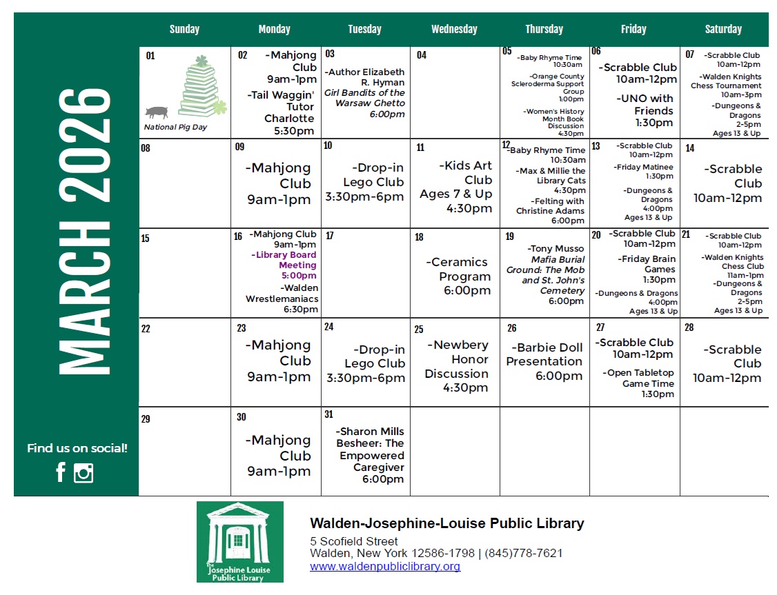 The Josephine-Louise Public Library circulates more than 84,000 items per year to residents of the Village of Walden and many residents of the Town of Montgomery. The library receives over 61,400 visits a year, and conducts more than 40,400 reference transactions. Join us at the Library and support our goal to provide materials and services to help meet the diverse educational, professional, and recreational needs of the community.