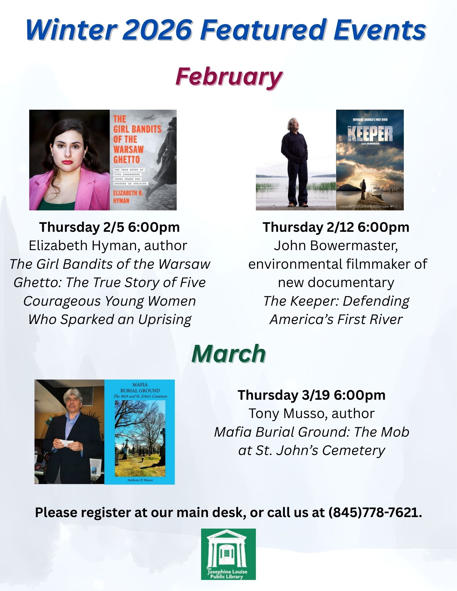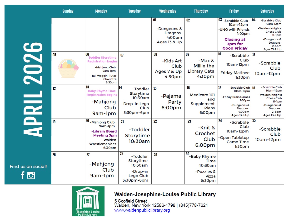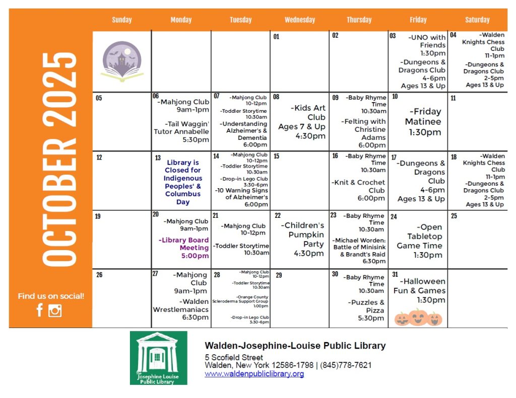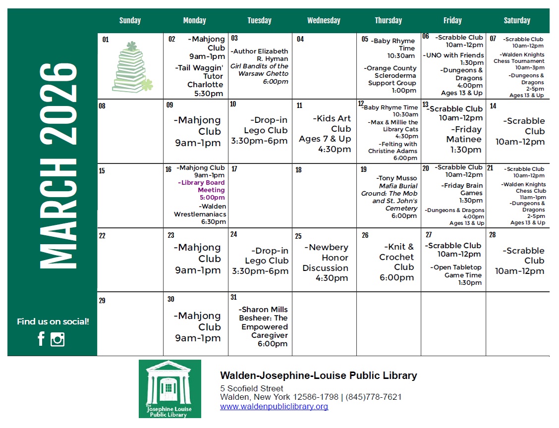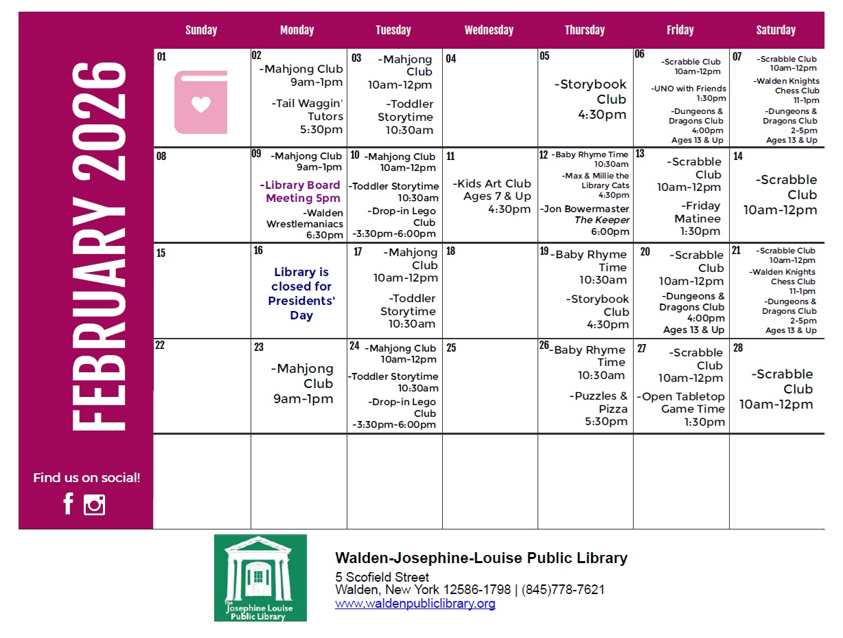 The Josephine-Louise Public Library circulates more than 84,000 items per year to residents of the Village of Walden and many residents of the Town of Montgomery. The library receives over 61,400 visits a year, and conducts more than 40,400 reference transactions. Join us at the Library and support our goal to provide materials and services to help meet the diverse educational, professional, and recreational needs of the community.