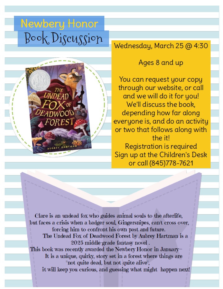 Traveling West on Rt. 52 Main St. (from Newburgh), turn left on Orchard St. (1st street after the traffic light), you will be facing the library entrance (about one block down Orchard).
